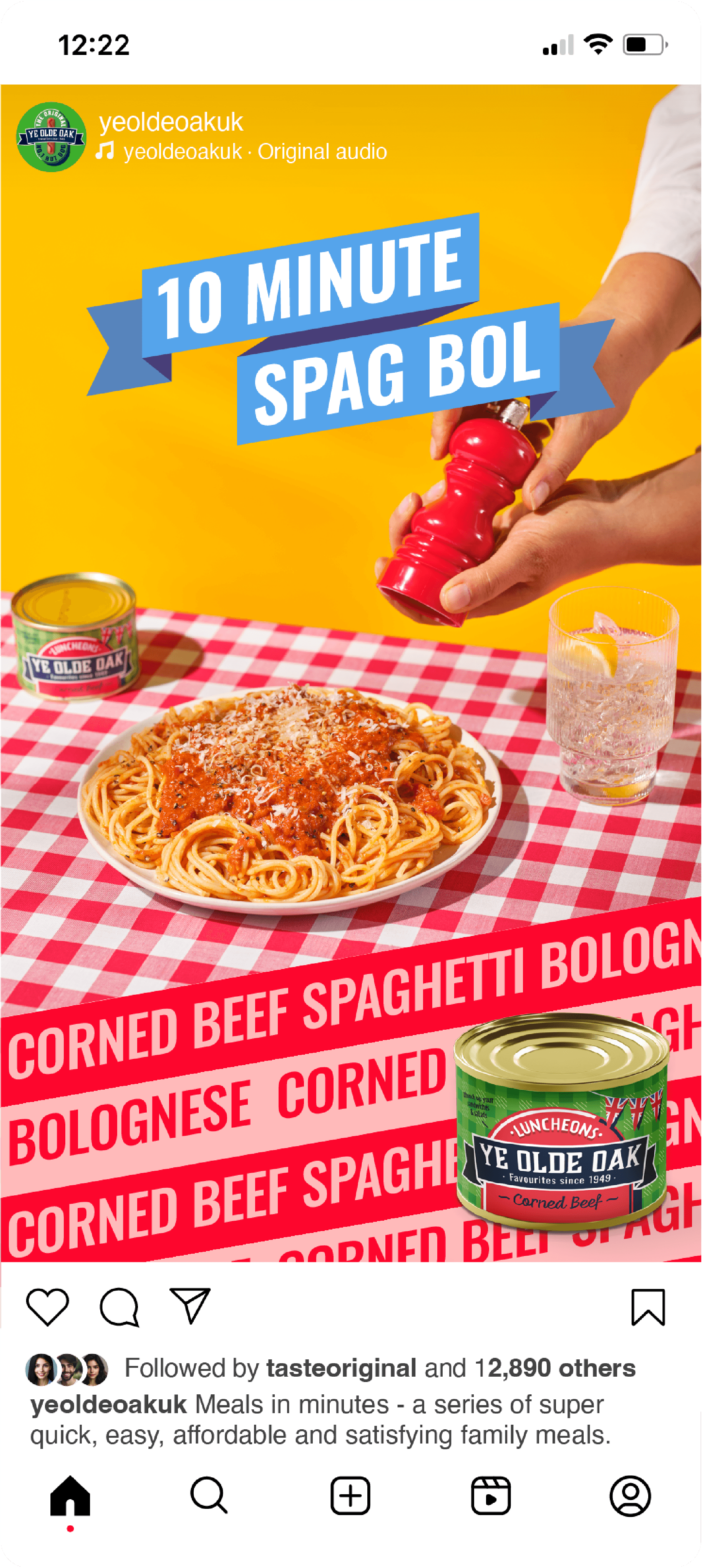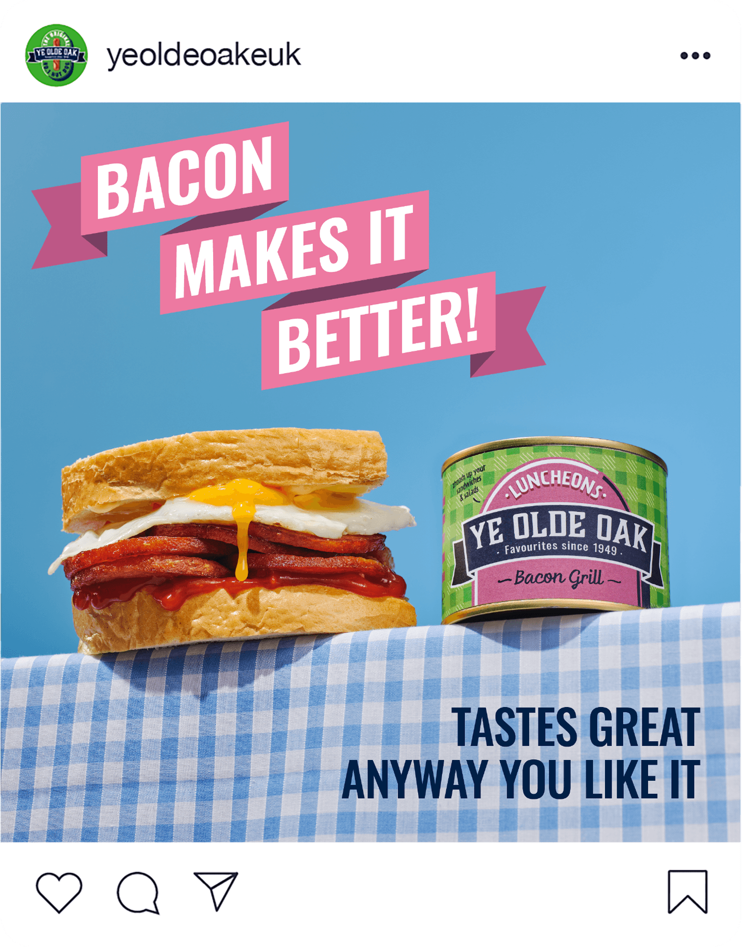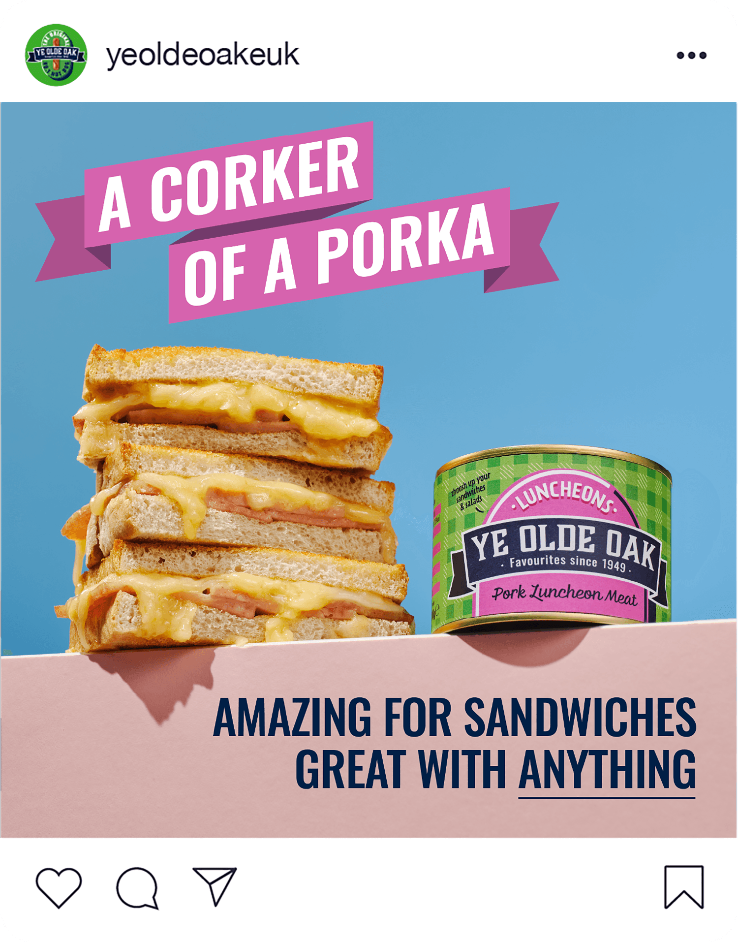 Building on the initial launch, socials were created that showcased quick and easy recipes with luncheons as a core ingredient. Aimed at busy families, shopping on a budget - these recipes needed to be quick and simple to make. They included family favourites, crowd pleasers and something more adventurous too. The art direction followed the retro style of the original ads to create a delicious set of visuals that would make anyone look twice.
