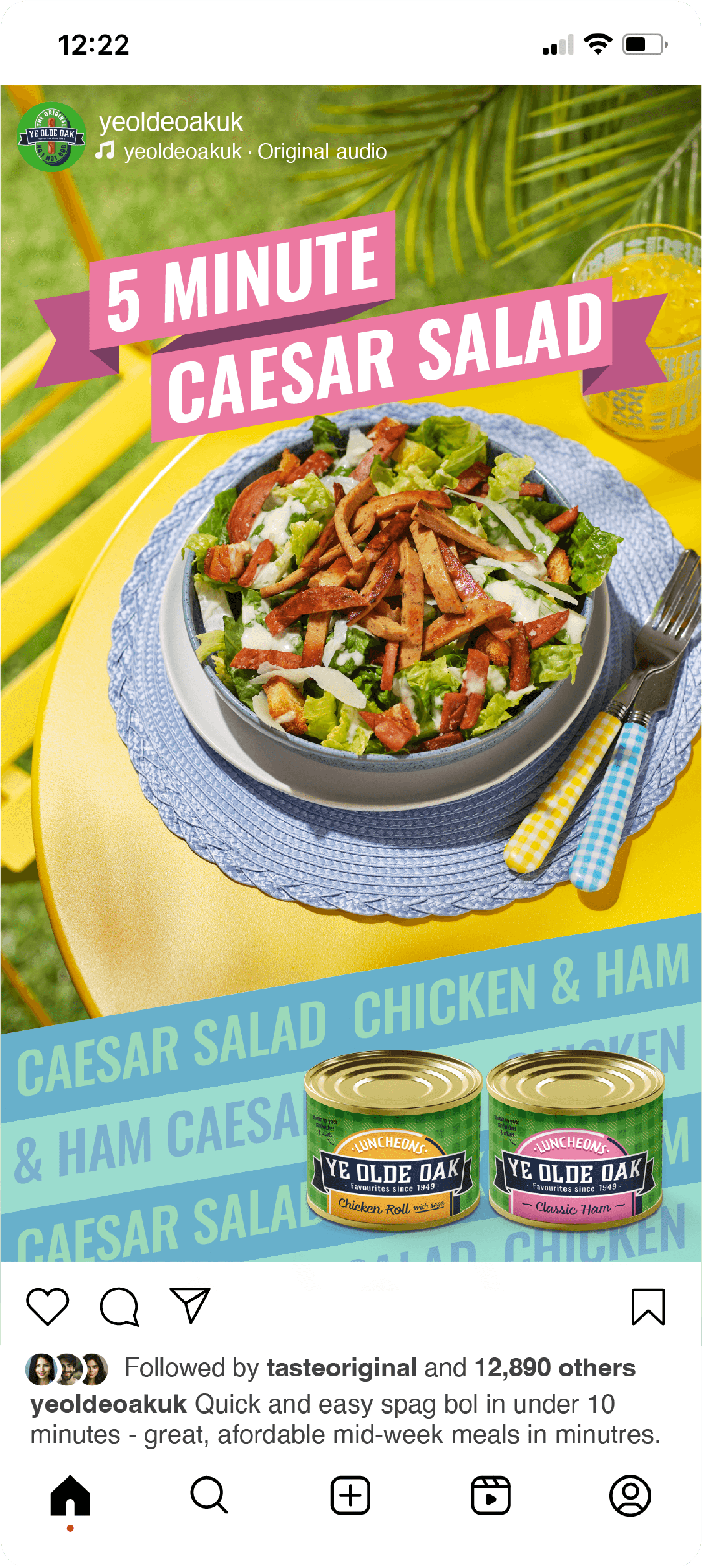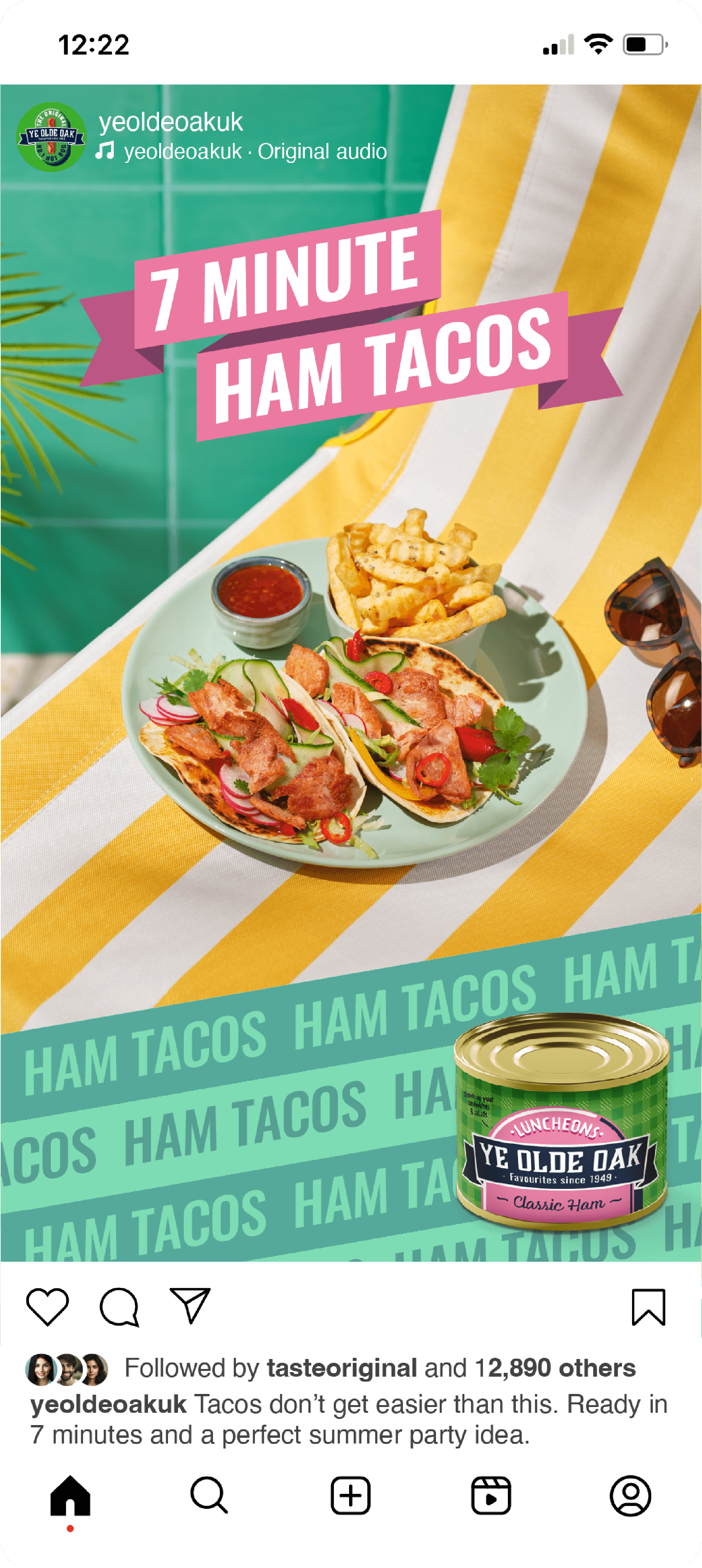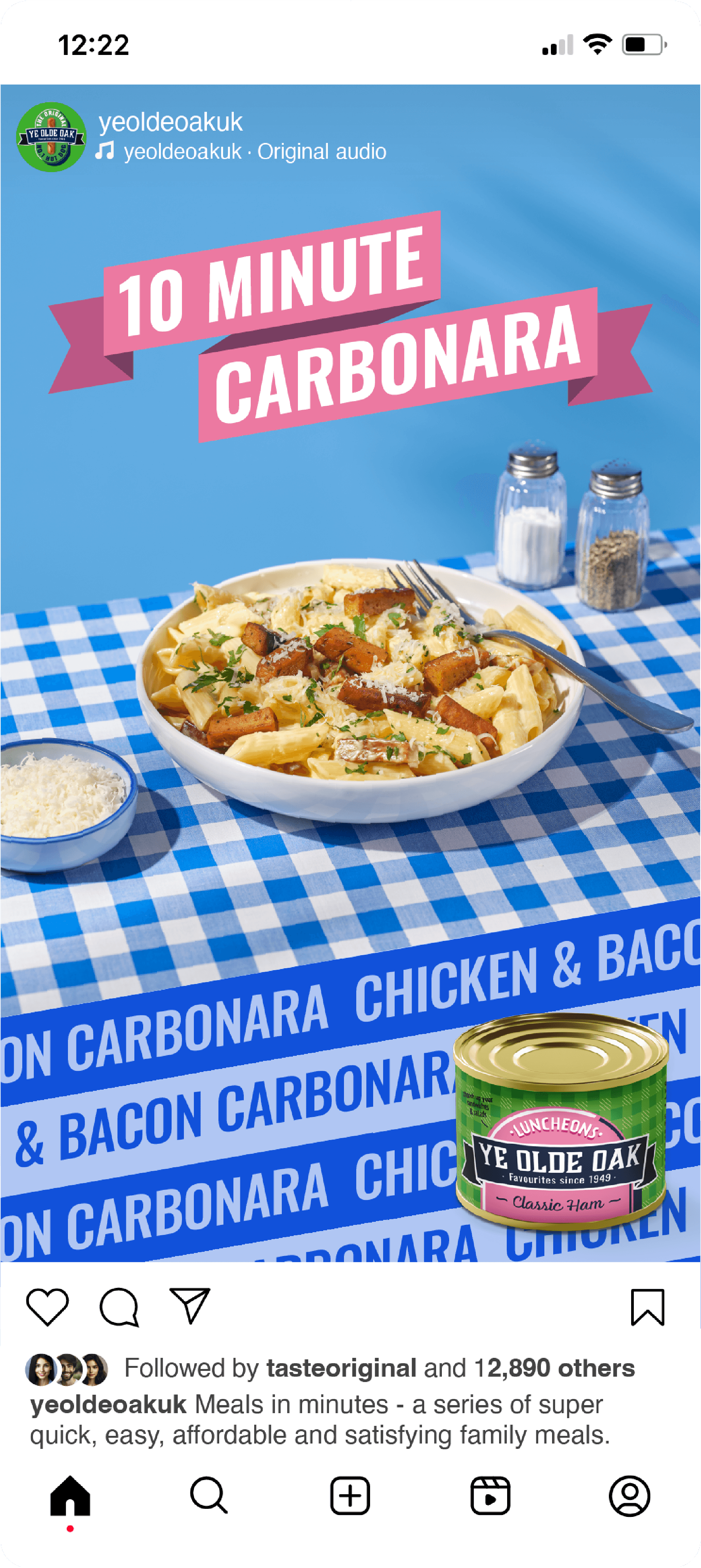 Building on the initial launch, socials were created that showcased quick and easy recipes with luncheons as a core ingredient. Aimed at busy families, shopping on a budget - these recipes needed to be quick and simple to make. They included family favourites, crowd pleasers and something more adventurous too. The art direction followed the retro style of the original ads to create a delicious set of visuals that would make anyone look twice.