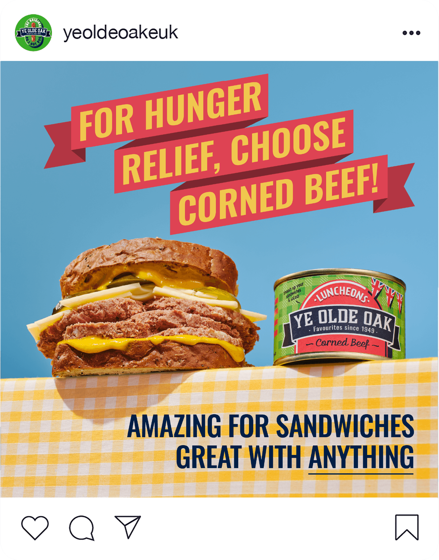 Ye Olde Oak have been feeding families for 75 years and we used this as inspiration for the retro art direction with a modern twist. Messaging was simple and straight to the point to tie in with the quick and easy theme. Light-hearted puns were used to state how good it was on sandwiches but to also highlight how good it was in other meals. A series of quick and easy recipes were created to accompany this.